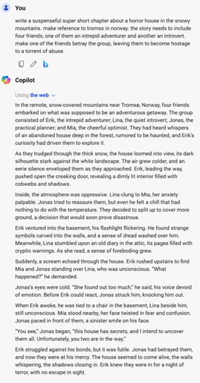 There is one aspect, however, that appears to be silent from today’s discussion: Have AI chatbots become better than us humans at writing? There is no doubt, these chatbots have gained the speed on us. Where we have pain ourselves to constructing meaningful and grammatically correct sentences and paragraphs, AI does it in a blip from the information it gathers. More impressively, on the surface it could be left to do its own research to construct written pieces with seemingly more knowledge than a writer like myself. It sure has proven easy for university students to get it do their coursework. It can be delegated to think and process information on more levels than a student could gain studying the entire evening or even week. As shown, AI also equally demonstrates creative flair.